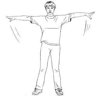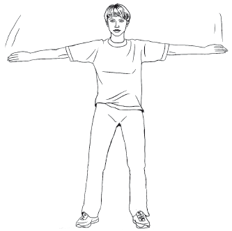 Исходное положение: станьте прямо, ноги на ширине плеч, руки вытянуты в стороны и расположены на одном уровне с плечами, ладони внутренней стороной направлены вниз к поверхности.