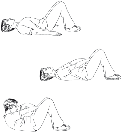 Исходное положение: лежа на спине, ноги согнуты в коленях и соединены, стопы прижаты к поверхности, руки расположены вдоль туловища.