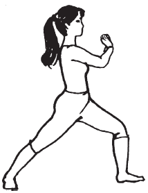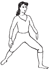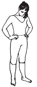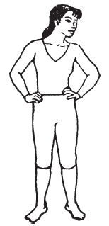 Примите исходное положение: стоя, ноги на ширине плеч, полусжатые кулаки на поясе.