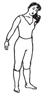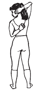 Заведите левую руку за спину и резко выбросите ее по диагонали вверх, сожмите кулак. Затем разожмите кулак левой руки, заведите правую руку за голову и, упираясь ладонью в затылок, толкайте голову влево. Резким движением выпрямите шею и вытолкните голову вперед. Возвратите голову в естественное положение и вытяните правую руку в сторону, после чего согните локоть и сожмите пальцы. Выполняйте упражнение по 10–20 раз в каждую сторону.