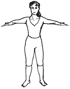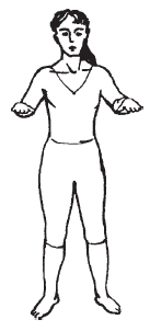 Примите исходное положение: стоя, ноги врозь, руки свободно опущены вдоль тела.