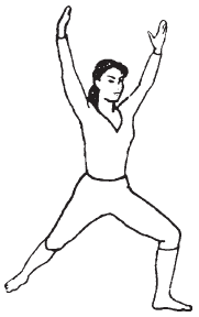 Выставляем левую ногу вперед. Предплечья скрещены перед грудью, пальцы сомкнуты, ладони повернуты вверх. Вытягиваем руки вверх и быстрым движением возвращаем их в положение перед грудью. Поворачиваем ладони вниз, быстрым движением вытягиваем руки по швам и затем возвращаем их к груди. Повторяем по 20–30 раз в каждую сторону.