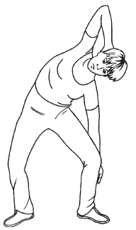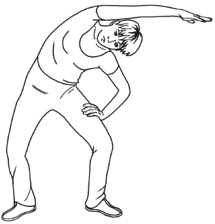 Из исходного положения выполните с максимально возможной для вас амплитудой наклон туловища влево. Почувствуйте растяжение косых мышц живота и задержитесь в этом положении на 30 секунд. Расслабьтесь и вернитесь в исходное положение. Выполните упражнение в другую сторону.