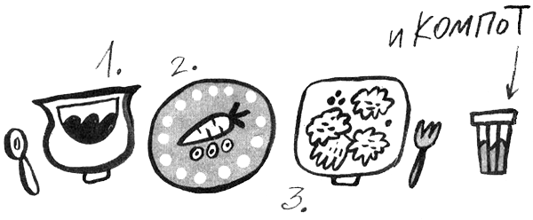 — А на десерт, — говорит Бабака, шинкуя капусту, — моё коронное блюдо «гоголь-моголь»! Возьмём четыре яйца и венчик…