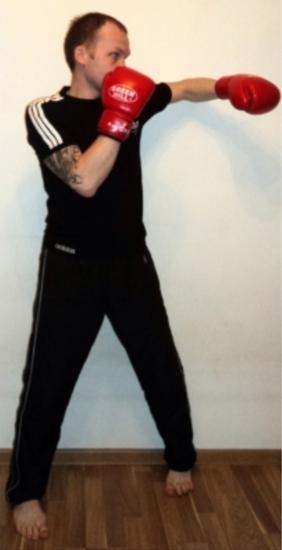 6. После нанесения удара немедленно возвращаем руку по кратчайшей траектории и принимаем исходную боевую позицию.