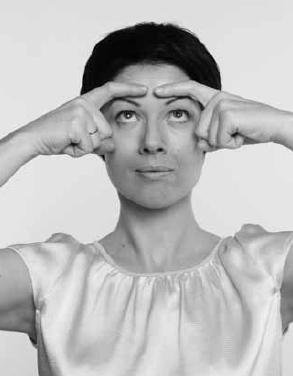 Часть 1. Укрепляем лоб. Указательные пальцы разместите над бровями. Плотно прижмите пальцы к мышце и слегка потяните лобную мышцу книзу, чтобы брови едва наплыли на глаза. Вскиньте брови, как будто от удивления, пытаясь толкнуть пальцы вверх. Следите, чтобы внутренняя и внешняя части брови толкали пальцы вверх с одинаковым усилием. Взгляд направлен вверх. Пальцами противодействуйте этому движению, удерживая мышцу на месте. Сохраняем напряжение 30 счетов.