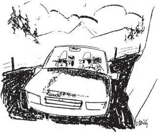 Мы уже вроде бы проехали положенное количество миль, но конюшни так и не было, а моя жена стала все больше нервничать и дергаться. Что же касается меня, то я упорно продолжал искать нужный дорожный знак, о котором мне говорили. Наконец-то мне удалось найти этот чертов указатель, но почему-то на левой стороне дороги, а вовсе не на правой, как мне сказали. В этом месте я, что называется, поднял лапки кверху, завернул к находившейся чуть поодаль маленькой делянке, где строилось какое-то жилье, и задал вопрос мужчине с молотком в руке. Этот человек никак не мог понять, о чем я толкую, потому как говорил только по-испански, а я владею лишь английским языком. Однако шестым чувством он все же понял, что я веду речь о лошадях, и жестами показал мне дорогу – куда-то вперед.