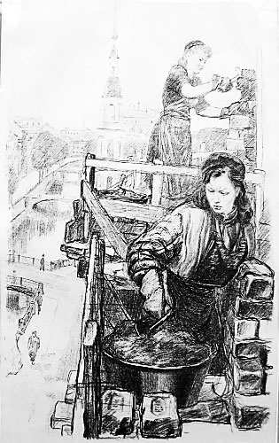 Из серии рисунков на тему «Восстановление Ленинграда» худ. А. Ф. Пахомова: