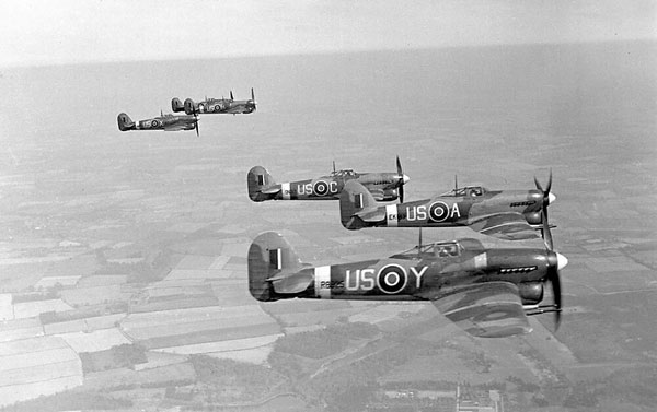 Основными типами английских тяжелых бомбардировщиков являются «Галифакс» и «Ланкастер», истребителей – «Спитфайр», «Тайфун», «Москито».