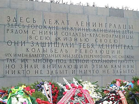 Подвиг защитников Ленинграда затмил древние мифы и исторические были о выдержке, стойкости и героизме осажденных врагом городов. Ленинград – город славных революционных традиций – олицетворяет собой непобедимый дух советских людей, их готовность, невзирая ни на какие трудности, отстоять социалистическую Родину. Ленинградцы показали себя истинными патриотами. Они понесли огромные жертвы, но ни на минуту не сомневались в победе. Многие из умерших во время блокады похоронены в братских могилах Пискаревского кладбища. На камне мемориальной стены высечены печально-торжественные слова: