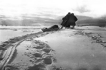 Эвакуация советского раненого с передовой в районе Витебска
