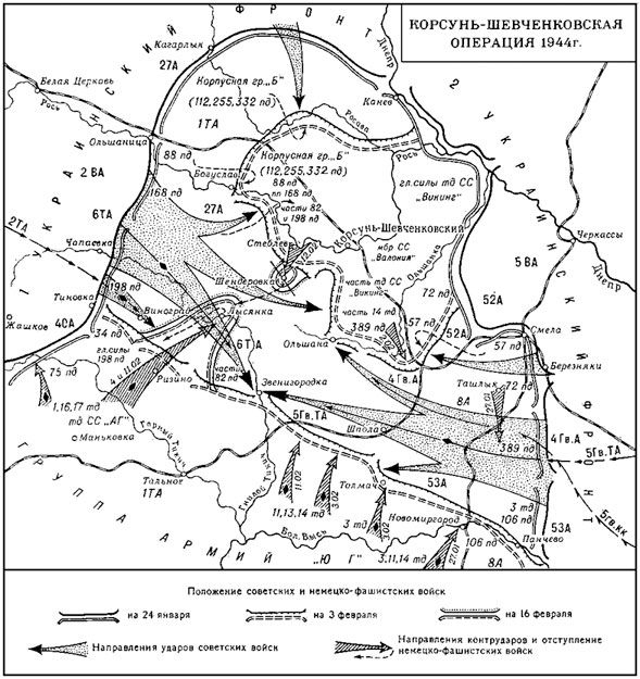 Днем 3 февраля. Корсунь-Шевченковская наступательная операция. Большую помощь наступающим войскам оказывает авиация, совершив с 29 января по 3 февраля 1944 года 2800 боевых вылетов.