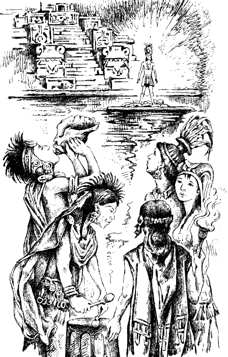 В назначенный день, до рассвета, юного наследника медленно несут на роскошных носилках к священному озеру Гуатавита. В ожидании торжественной церемонии выстроились роды и племена, братья по крови и союзники. У каменной лестницы, врезанной в берег озера, на воде покачивается богато украшенный плот.