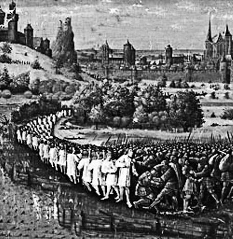 Жители нынешней Германии, тогдашней Священной империи, поначалу смотрели на толпу крестоносцев как на диковинное стадо. Баварцы и саксонцы, смеясь, называли их жертвами «неверных и глупых надежд». «Немцы» оставались глухи к словам папских проповедников: они вообще не любили папу, их император Генрих IV воевал с ним. Но пример французских и английских христиан оказался заразительным. Германские кипчаки тоже «заразились» неодолимым желанием к перемене мест. К действию!