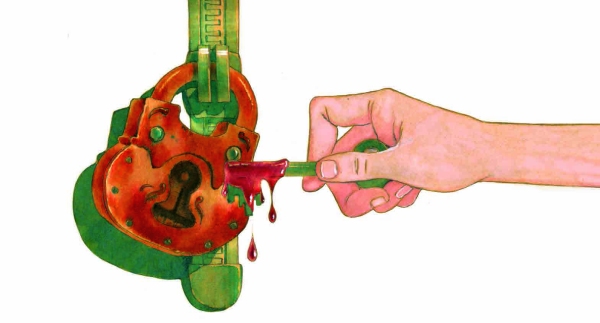 Боря взял ключ и опустил в банку с вареньем. Как только он его вынул, замок с урчанием набросился на лакомство, чуть не оттяпав Боре указательный палец. Что-то внутри у него щёлкнуло (не у Бори, а у замка), и он открылся!