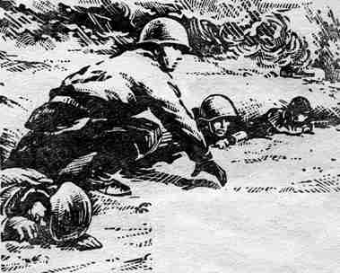 Как командир, он мог послать к дзоту еще несколько человек. Он имел на это право. Но, кроме прав, есть еще нечто большее, из чего складываются взаимоотношения между командиром и подчиненными, что ведет в бой, — личный пример командира. И Василий решился. Резкий рывок. Воронка от снаряда. По ее гребню прошлась пулеметная очередь. Выждал минуту — еще рывок. Так, стремительными перебежками, достиг одиноко стоявшего дерева. От него полсотни метров до дзота. Прицелился, выпустил весь автоматный диск по амбразуре. Пулемет врага замолчал.