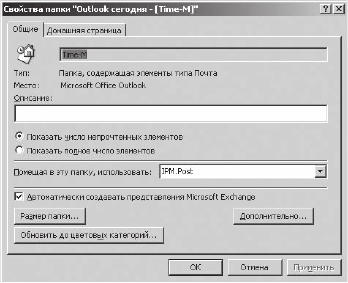 Выберите команду Свойства для личной папки. Вместо названия «личная папка» может быть любое иное, какое вы задали ранее. В нашем примере имя личной корневой папки «Time-M». Появится вот такое меню: