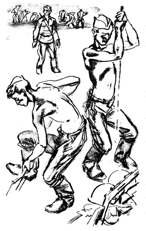 Через две ячейки слева от нас работал сержант. Он копал не торопясь, размеренными, какими-то даже ленивыми на вид движениями, но сделать успел больше всех. Он почти по пояс вошел в жесткую землю,