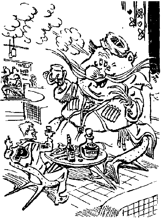 Он, расчувствовавшись, выпустил из ноздрей четыре струи едкого желтого дыма, окутавшего ресторан, но тут же взял себя в руки и объявил: