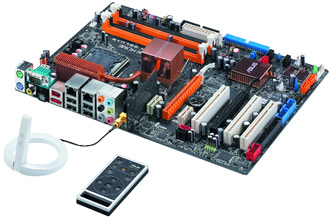 А из трех PCI-разъемов занятым в итоге оказался всего один (той самой Creative X-Fi), потому что у платы имеется два гигабитных сетевых интерфейса, работающих на шине PCI Express, и… встроенный Wi-Fi-адаптер, что покрывает мои потребности с большим запасом. Причем Wi-Fi по каким-то причинам работает не на PCI Express и даже не на обычной PCI, а через хитро распаянный на краю материнской платы USB-разъем. Оценить изящность решения не могу, но, судя по опыту недельной эксплуатации в связке с роутером SMC, работает оно без взбрыкиваний.