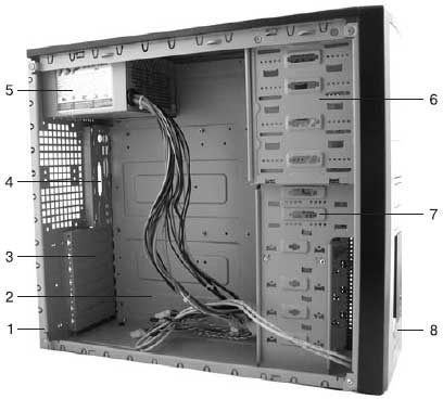 Возможно, ваш корпус внешне и отличается от изображенного на рис. 3.3, но при внимательном рассмотрении вы легко найдете в своем корпусе все перечисленные элементы.