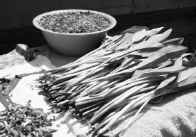 ЧЕРЕМША (Allium vikto-rialis). Растет почти во всех районах Байкала, местами образуя значительные заросли. Это травянистое растение из семейства луковых, с высотой стебля 30–70 см, с широкими, 2–8 см, черешковыми, плоскими листьями. Продается на рынках в мае – июне, когда стебли и листья черемши наиболее мягкие и сочные. Молодые побеги употребляют в пищу в свежем, соленом и квашеном виде, добавляют в супы, окрошки, пельмени, фарш, используют в виде салатов. Листья содержат такие полезные элементы, как витамин С (до 73 %), каротин (14 %), белки (2,4 %), углеводы (6,5 %), сапонины, эфирные масла, органические кислоты, большое количество фитонцидов.