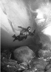 Неповторимое по красоте дно отмечается подводниками на мелководье около Ушканьих островов. На острове исследованы два жерла древних вулканов с остатками лавового потока, предполагают, что эти вулканы связаны со становлением Байкальской рифтовой впадины и извергались задолго до образования озера. Следы вулканической деятельности можно увидеть и под водой. Южнее Большого Ушканьего острова сплошным покровом лежит на дне пузырчатая базальтовая порода, излившаяся в древности из вулканов. Это единственное место на Байкале, где обнаружены подводные лавовые поля. Если на поверхности, на пляжах Ушканьих островов и в северной части Ольхона, базальтовая порода хорошо окатана волнами, то под водой она находится в первобытном виде – с острыми краями и рваными гранями. Глубина здесь небольшая, около 3—12 метров, проходит много солнечного света, и лавовое поле отлично обозревается. На глубинах до 5 м приметны хорошо освещенные огромные глыбы белого мрамора высотой до 3–4 м. Немного севернее, между Большим Ушканьим островом и Малыми островами, обращает на себя внимание ровная белая мраморная площадка. Но о самом интригующем объекте в этом районе, видимом на дне под водой в солнечную погоду, сообщил ледовый капитан А. Бурмейстер. На глубине около 12 м к востоку от Ушканьего острова покоится на дне загадочный 1,5-метровый шар, отличающийся более темным цветом от окружающей коренной породы. Лежит он в воронке с характерным круглым валом выброса светлой гальки по периметру, что наталкивает на предположение о его метеоритном происхождении. Этот объект ни учеными, ни подводниками еще не исследован.