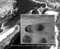 Видеосъемка с борта батискафа «Пайсис» в 1990 г. запечатлела дырчатые глины на глубине свыше 300 м