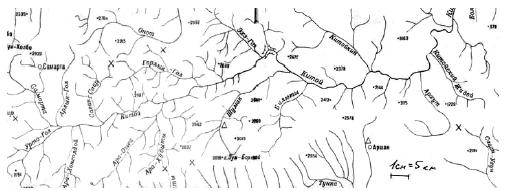 От устья Шумака до знаменитых шумакских источников около 25 км. Ущелье Шумака от устья вверх тянется почти на 10 км – это узкий извилистый каньон с отвесными 20-метровыми скальными стенками, со следами множества временных и постоянными водопадами. Но все эти водопады низвергаются не в замкнутые ледниковые кары, а в ущелье Шумака, иногда прямо в стремительный поток реки. Они совершенно не похожи на деминский водопад, падающий в замкнутую каменную чашу. К нему можно было подойти на лошадях, а по каньону Шумака можно пройти на лошадях только зимой. Ширина каньона местами сужается до 4–5 м. Летом грохочущий поток среди отвесных скальных стен непроходим даже на лодках (наивысшая, VI категория сложности), пешком каньон обходят далеко по верху. Местами тропа здесь весьма опасна и непроходима на лошадях. Она идет по крутым каменным осыпям и скользким мраморным скалам с узкими полками, на которых порой не за что ухватиться и есть реальный риск сорваться вниз.