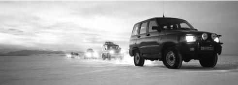 НА АВТОМАШИНАХ ПО ЛЬДУ. Популярными стали маршруты по льду Байкала с юга на север, от Култука до Северобайкальска, вдоль всего озера (636 км). Спортсмены на лыжах и коньках проходят его не спеша за 2–3 недели (француз Мишель Жиль прошел этот маршрут за 12 дней), на автомашинах по льду проезжают за сутки. В 2004 г. зафиксирован рекорд Иркутской области. На автомашине «УАЗ-452» (А. Бурмейстер) от Слюдянки до Нижнеангарска без выхода на сушу по льду Байкала пройдено 764 км за 23 часа 45 минут. В 2007 г. зафиксирован рекорд в Книге рекордов России первого в мире самого быстрого прохождения по льду на внедорожнике от МРС до Нижнеангарска: за 12 ч пройдено 415 км. Преодоление маршрута проходило в сильный снегопад, при плохой видимости. По воспоминаниям организатора пробега – ледового капитана А. Бурмейстера, путь преграждали 3-метровые трещины, и при плохой видимости они создавали угрозу жизни гонщикам, но благодаря мастерству ледовых капитанов трасса была пройдена успешно. Принимали участие в гонках 6 машин из Иркутской области.