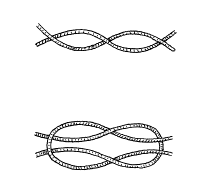 3. Снова перевейте оба конца от себя. Обе нити справа должны находиться над петлей узла, а слева – под петлей узла.