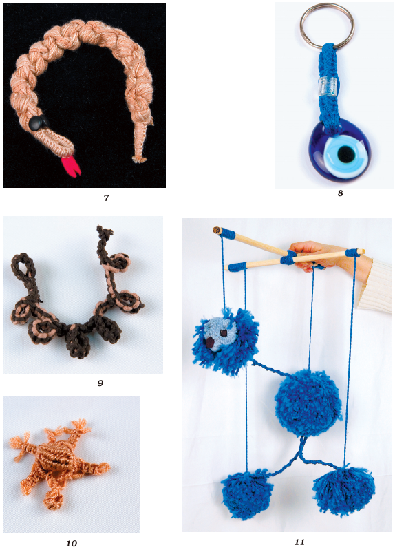 7 – сувенир «Змейка»; 8 – брелок-амулет; 9 – игрушка «Гусеница»; 10 – сувенир «Черепашка»; 11 – игрушка-марионетка