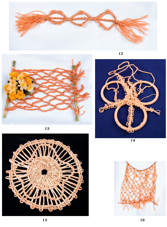 12 – маленькое панно; 13 – декоративное панно с цветами; 14 – композиция для зеркала; 15 – подставка; 16 – шторка-паутинка