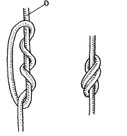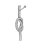 Заколите булавкой на рабочей подушке правый конец нити. Левым концом снизу вверх образуйте петлю, плотно обмотайте ее сверху вниз по спирали и конец нити опустите в петлю. Придерживая обмотку двумя пальцами, подтяните оба конца и срежьте нижний конец.