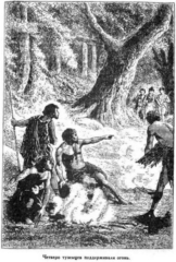 «На берегу недалеко от моря мы заметили несколько костров,- сообщается в отчете; -Кретен и д'Орибо решили высадиться. Едва они вступили в лес, как увидели четырех тузем-