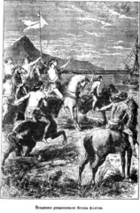 Туземцев сопровождало множество собак; низкорослые лошади, на вид очень невзрачные, отличались, однако, исключительной резвостью. Женщины, подобно мужчинам, ездили верхом без стремян, и все мчались галопом вдоль берега моря, хотя он был усеян большими и очень скользкими камнями.