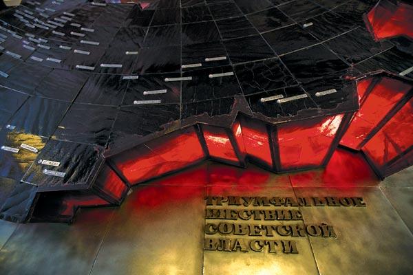 Центральный экспонат музея Ленинского мемориала — огромная электрифицированная карта «триумфального шествия» советской власти — сделан из кусочков того же рубинового стекла, что и звезды кремлевских башен. Фото: МАКС АВДЕЕВ/AGENCY.PHOTOGRAPHER.RU