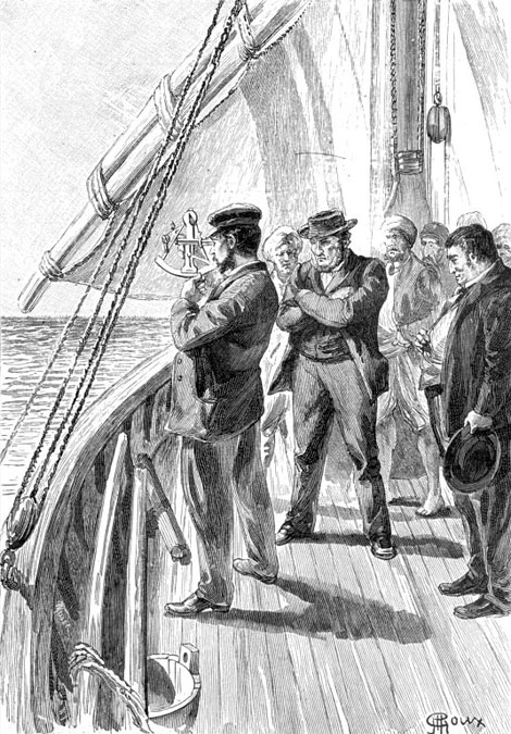 Между тем солнце поднималось все выше. На ослепительно чистом небе не было ни облачка, и молодой капитан решил, что теперь-то он определит широту.