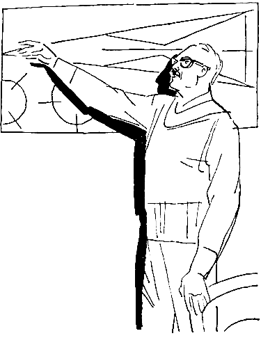 Но вот, наконец, и Академия Тяготения. Я перешел на эскалатор, перевозивший пассажиров вниз, на улицы, и очутился у подножия здания. С некоторым смущением вошел я в просторный вестибюль Академии, где меня строго встретили бюсты Ньютона и Эйнштейна, установленные по бокам широкой, как приморская терраса, мраморной лестницы главного входа. Справочный экран указал мне, где найти Самойлова. Дверь его комнаты была приоткрыта.