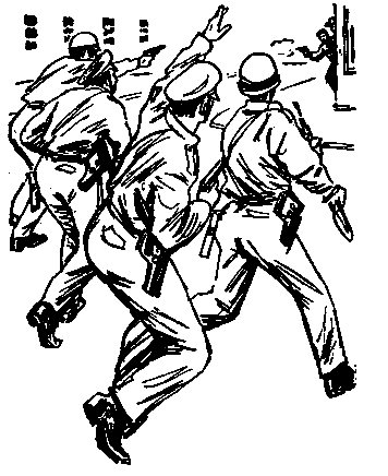 Дверь мастерской, где мы прятались, находилась за углом выступавшей здесь каменной кладки. Полицейские, уже заглянувшие в переулок, не могли нас увидеть, но даже идиот от рождения мог сообразить, что пробежать переулок во всю длину его и скрыться на смежной улице мы всё равно не успели бы.