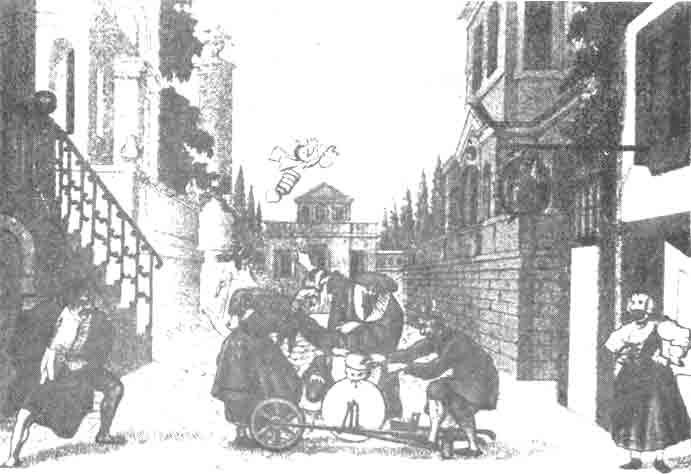 Иллюзионная сцена из комедии дель арте. Гравюра XVIII в.