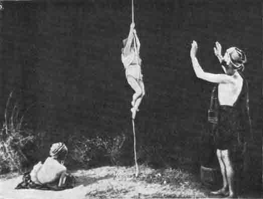 Знаменитый трюк можно видеть и в кино в обоих вариантах «Багдадского вора», где Дуглас Фербенкс, а затем М. Пауэлл взбираются по «волшебной» веревке. Но во всех этих случаях техника очень отличается от приемов индийских факиров.