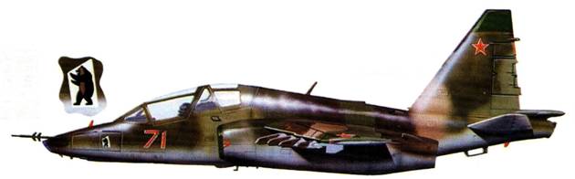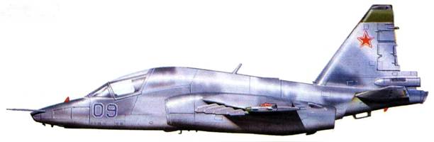 Су-25 с бортовым номером «25» красного цвета. 357-й отдельный штурмовой авиационный полк 16-й воздушной армии. Восточная Германия, начало 90-х годов. На внешней подвеске — УР воздух-поверхность Х-29МЛ с палуактивным лазерным наведением. На внешний пилон подвешена УР воздух-воздух Р-60 ближнего радиуса действия.