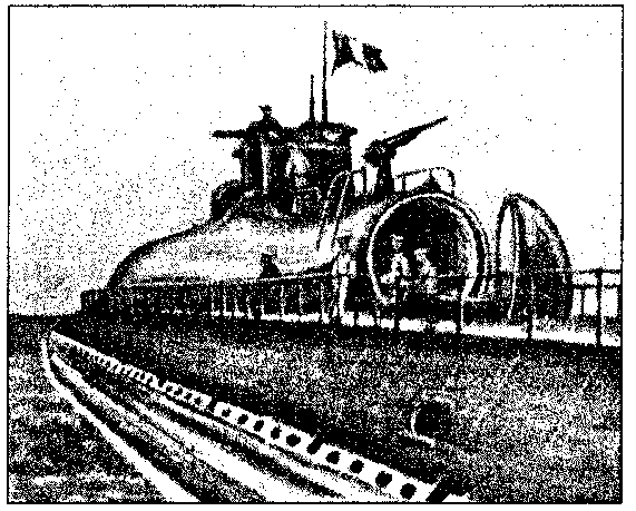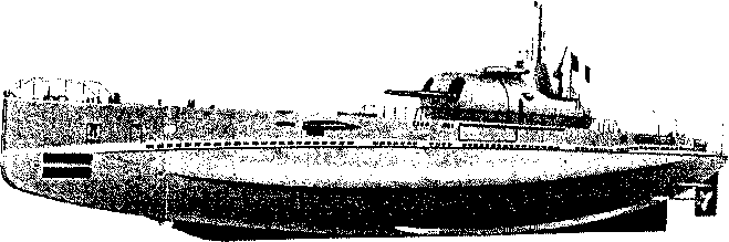 Более успешно шли дела у французов. В 1929 году они спустили на воду гигантский подводный крейсер «Сюркуф» водоизмещением 4300 т и длиной 119,6 м. Лодка предназначалась для охраны атлантических конвоев и должна была вступать в артиллерийский бой с любым рейдером типа вспомогательного крейсера, а боевые корабли атаковывать торпедами. Поэтому вооружение французской субмарины не имело больше аналогов: на ней установили броню, башенные 203-мм орудия, четыре 37-мм автомата и 12 торпедных аппаратов, из которых восемь (четыре внутренних носовых и четыре спаренных внешних) наводились на цель как у надводных кораблей. Для своевременного обнаружения рейдеров противника лодку снабдили небольшим гид-ропланом-разведчиком. Экипаж этой подводной лодки-ги-ганта состоял из 150 человек. Наибольшая скорость хода достигала 18 узлов. Авиаангар длиной 7 м и диаметром 2 м находился на палубе за рубкой. После всплытия лодки самолет выводился на корму, собирался, запускался мотор, а люк в ангар задраивали. Лодка занимала позиционное положение (притапливалась), вода смывала самолет и летчик начинал разбег. Сначала на «Сюркуф» базировался «Бессон МВ-5» со 120-сильным мотором. Самолет весил 765 кг, развивал скорость 163 км/ч и мог подниматься на высоту 4200 м. Длина машины — 7 м, размах крыльев — 9,8 м. В 1933 году его место занял более совершенный двух-