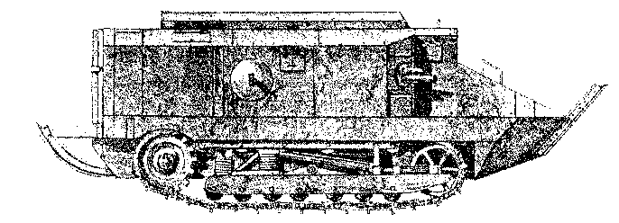 позволяло на ровной дороге развивать скорость до 7 км/ч. Вооружение состояло из 75-мм пушки и четырех пулеметов. Пушку установили в лобовом листе, более-менее вписав ее в общую структуру машины. Но стрельба могла производиться только в узком секторе прямо по курсу, поэтому перенос огня сопровождался поворотом всего танка. Пулеметы располагались по одному стволу в бортах, а также в носовом и кормовом бронелистах.