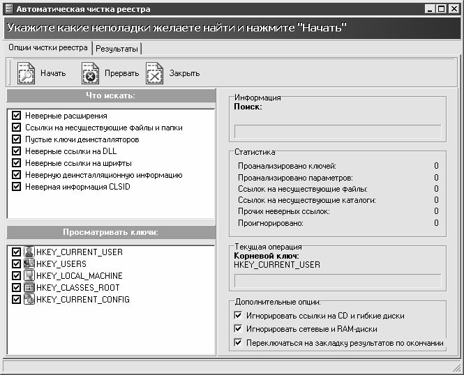 Интерфейс программы в режиме чистки реестра представлен на рис. 1.1.