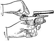 Примечание. Запрещается взводить курок самовзводом до его срыва, когда не присоединен к рамке затвор.