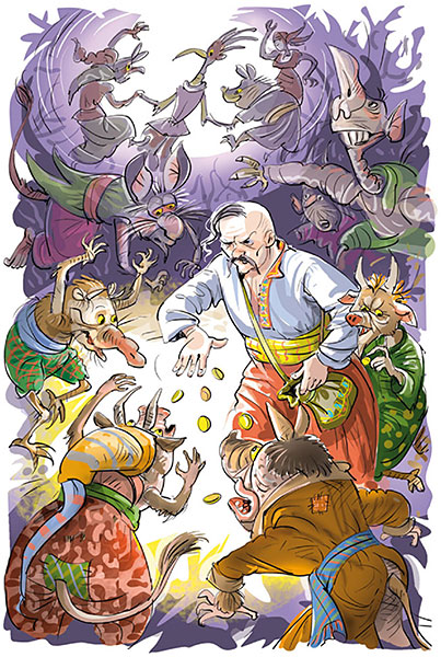 Не успел он докончить последних слов, как все чудища выскалили зубы и подняли такой смех, что у деда на душе захолонуло.