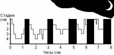 Рис.1.1. Стадии сна (черным – указана фаза парадоксального сна).