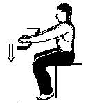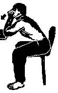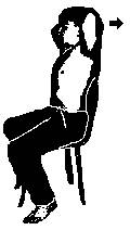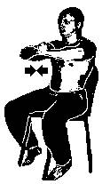 13. Сидя прямо поднимите согнутые руки горизонтально перед собой так, чтобы растопыренные пальцы сомкнулись. Давите одной рукой на другую в течени и 6 секунд (рис.2.20).